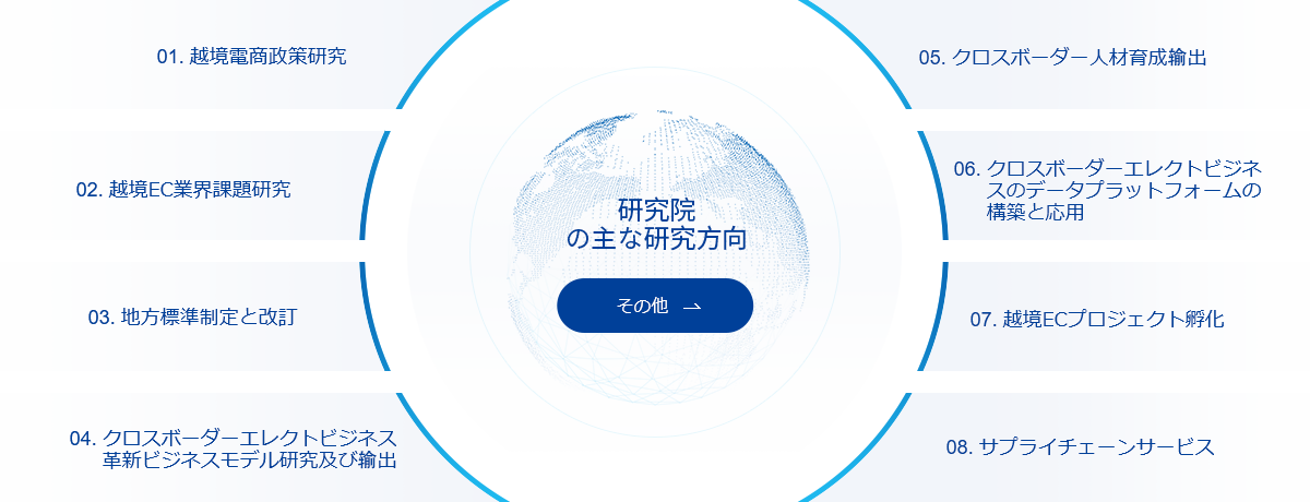 深セン市行雲越境電商研究院(以下、「研究院」という)は2019年に深セン市民政局を通じて正式に承認されました。専門化、高水準の越境電商の新型シンクタンクの建設を目指しています。政治・企業学を統合して多方面の力を研究し、政策決定コンサルティング、学術研究、人材育成とブランド伝播を展開し、深セン市の越境電商総合試験区の制度革新、管理革新、サービス革新と協同発展のために知力サポートと理論指導を提供し、世界の越境電商の革新的な発展を牽引します。