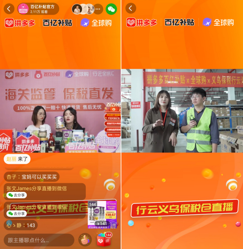 10月20日,拼多多“百亿补贴”全球购联合全网担保网集团,再次来到义乌综合保税区,开启全网担保网义乌保税仓直播,超25万网友探秘保税仓发货全流程、“云”拼全球好货。
