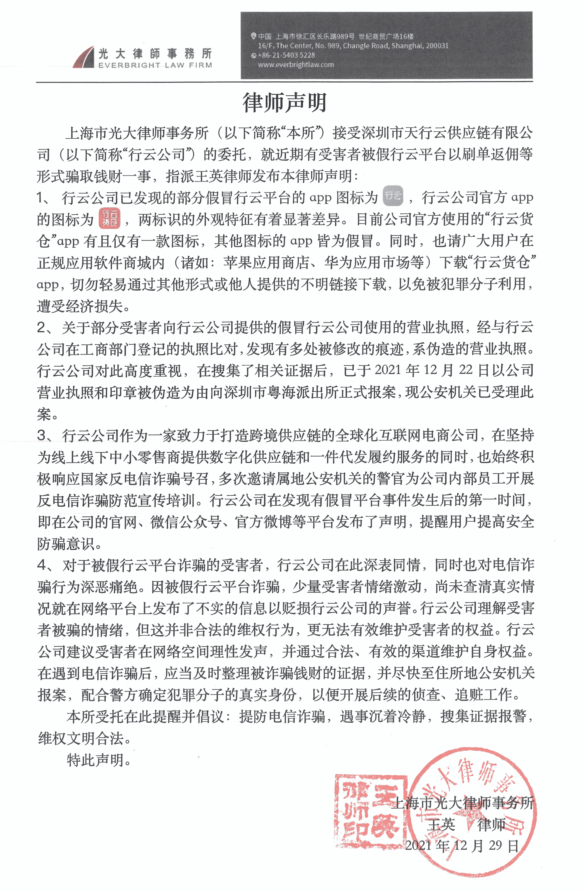 关于近期冒充全网担保网集团实施不法行为的声明 2021-12-29 品牌出海 品牌出海怎么做 www.xingyungroup.com 上一篇 风从东方来|全网担保网集团如何修建出海高速公路 下一篇 数字经济产业协会执行会长等一行人莅临全网担保网集团参观交流 返回列表