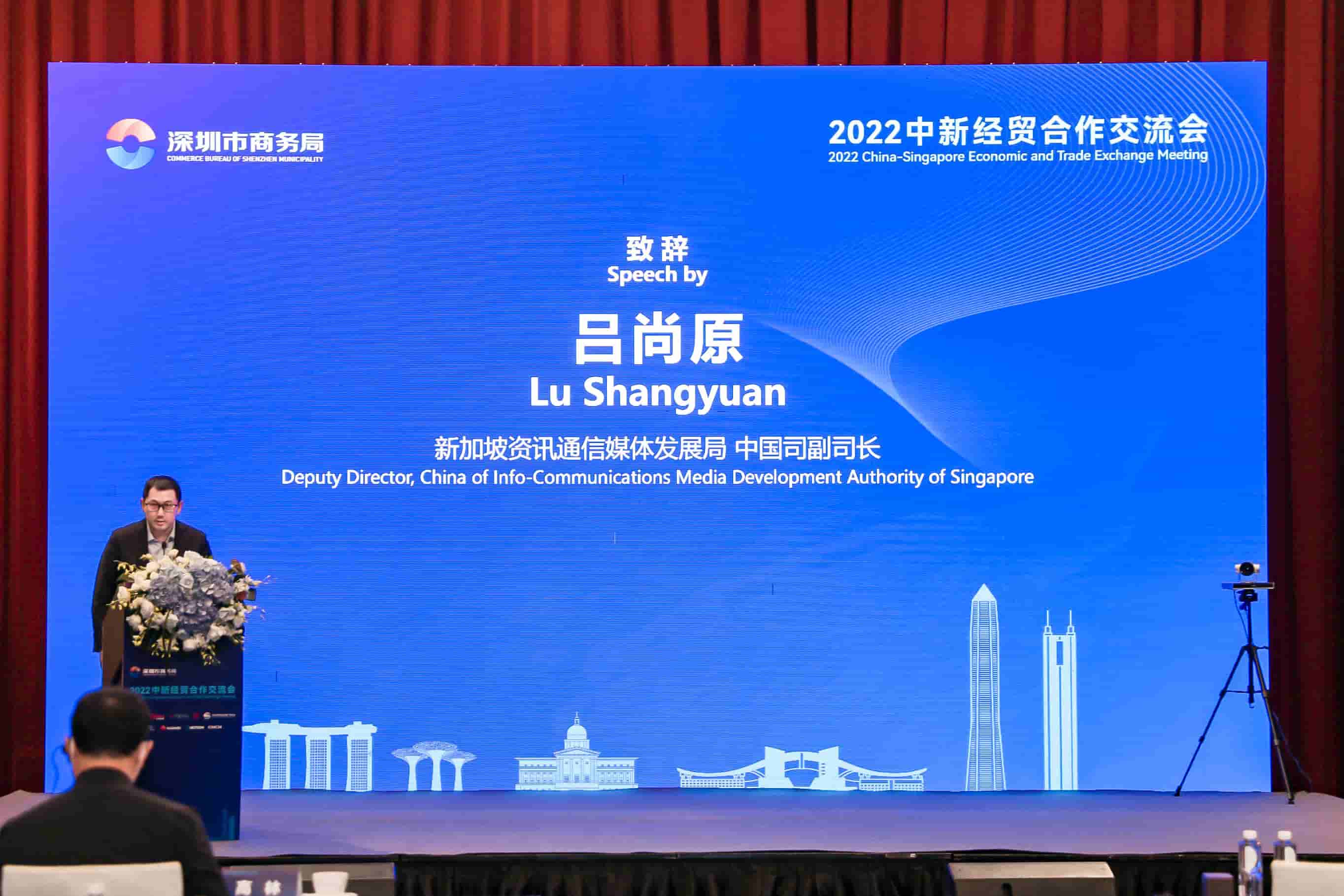 在本次交流会上,深圳全球经贸网络指挥中心主任于智荣、深圳市商务局二级巡视员高林、新加坡资讯通信媒体发展局中国司副司长吕尚原等领导分别进行致辞。