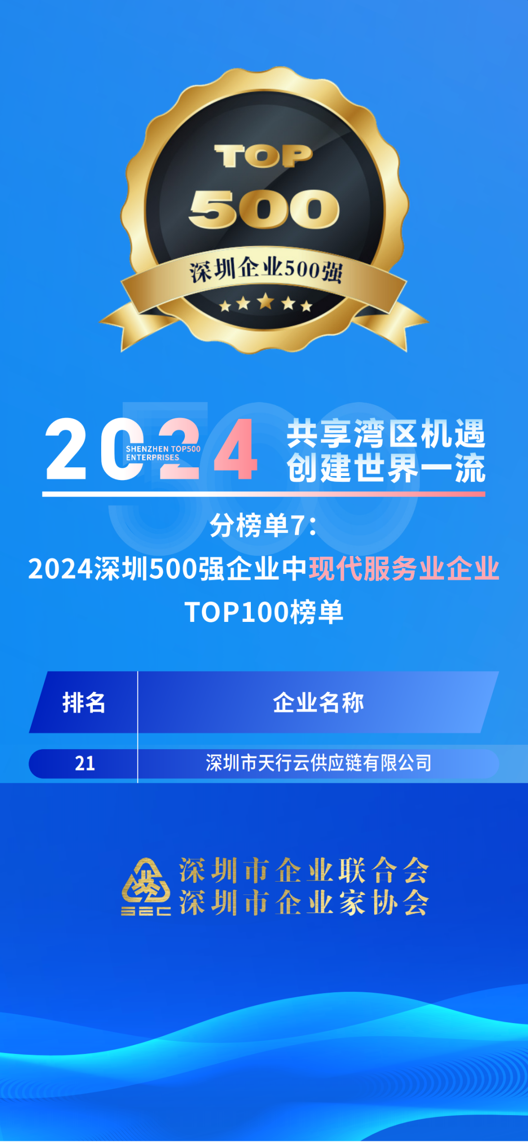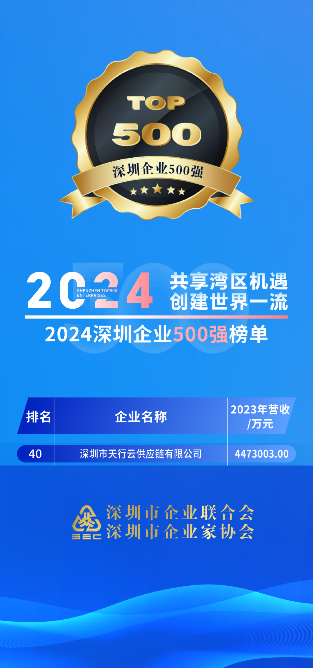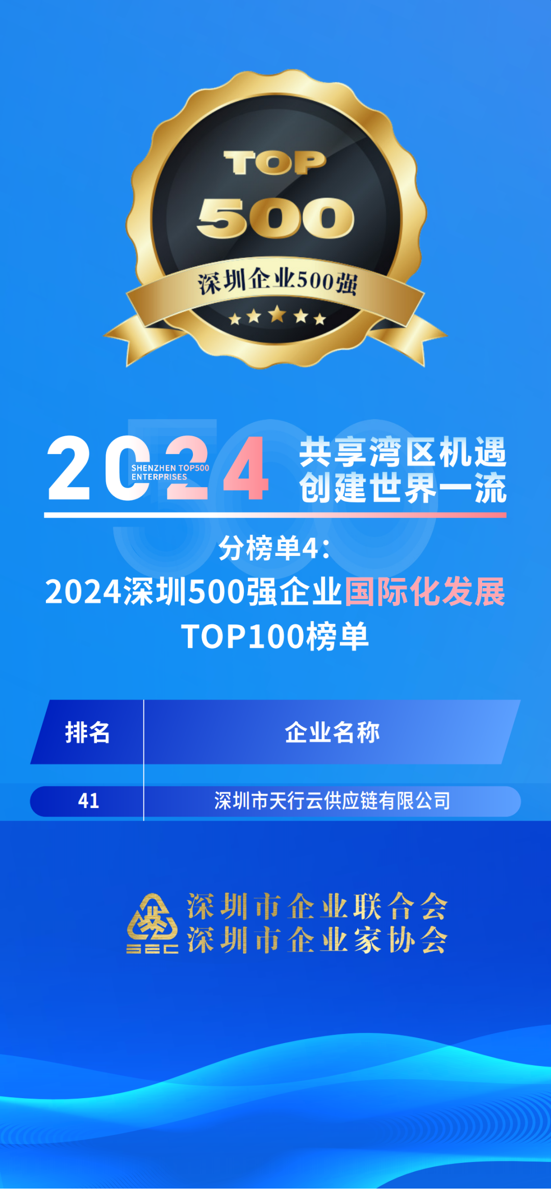9月27日,深圳市企业联合会、深圳市企业家协会(简称深圳企联)正式发布“2024深圳企业500强榜单”及《2024深圳500强企业发展报告》。