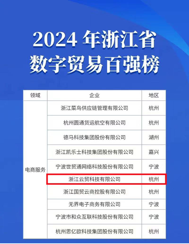 全网担保网集团旗下全资子公司浙江云贸科技有限公司成功入选“2024年浙江省数字贸易百强榜”。